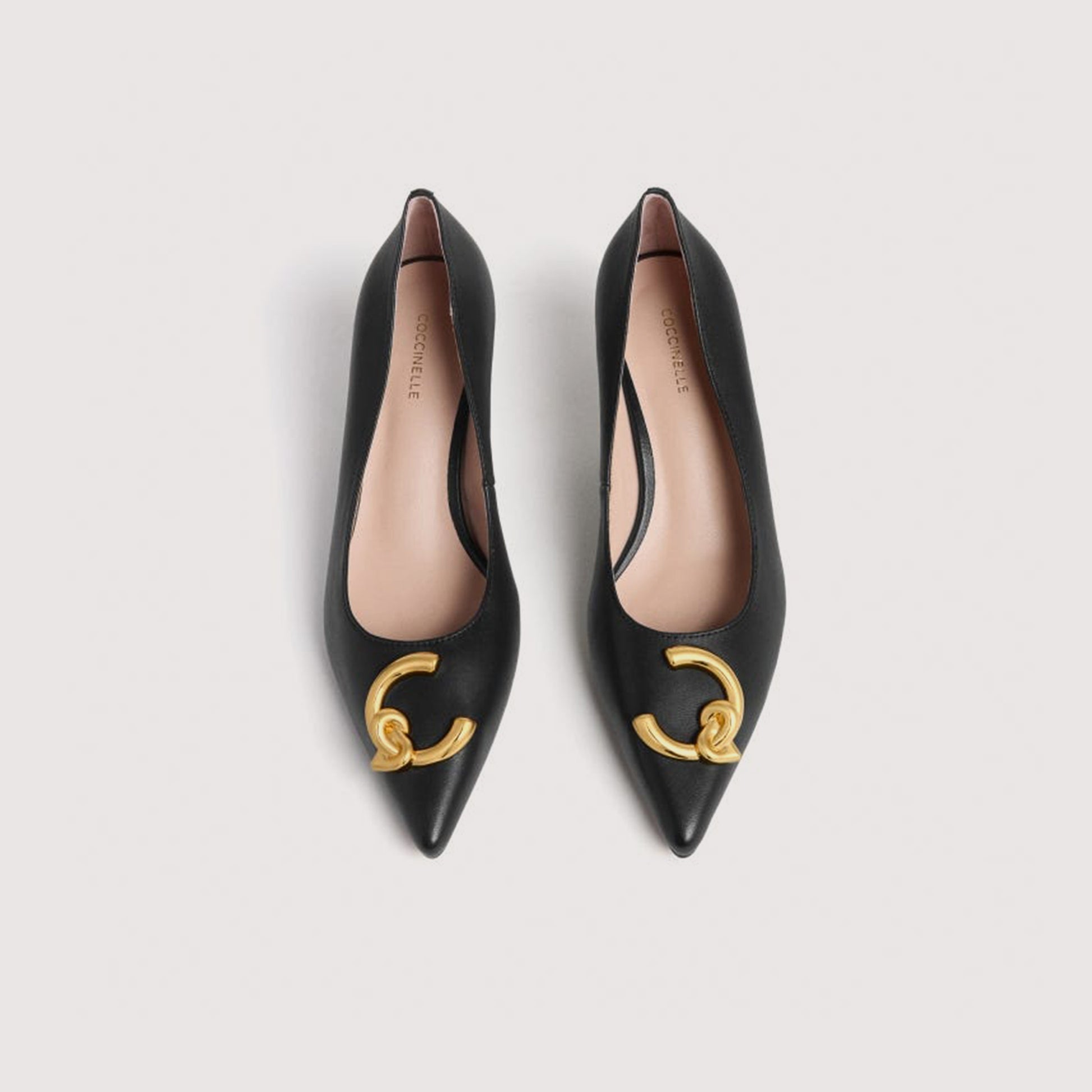 These ballet flats from the Coccinelle C-Me line are enhanced by the logo reimagined with the C of Coccinelle, which knots around and embraces the plectrum, an iconic element of the brand. A sophisticated and feminine line, perfect for making any occasion special. Complete your look without sacrificing a Coccinelle detail. This model is made with smooth leather, soft to the touch. In order to preserve the beauty of this product, we recommend protecting it from water, oil, grease and alcohol and avoiding prolonged exposure to direct heat sources or adverse weather conditions. In the event of it becoming wet in the rain, we recommend drying the product with a soft, light-coloured cloth.INFORMATIONS ABOUT THE PRODUCT
