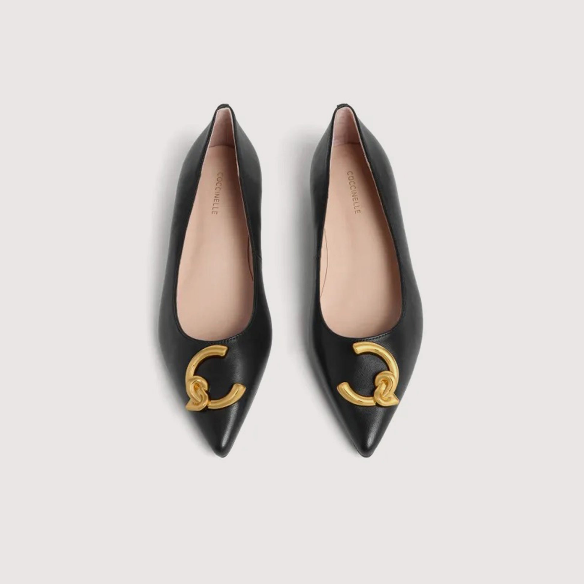 These ballet flats from the Coccinelle C-Me line are enhanced by the logo reimagined with the C of Coccinelle, which knots around and embraces the plectrum, an iconic element of the brand. A sophisticated and feminine line, perfect for making any occasion special. Complete your look without sacrificing a Coccinelle detail. This model is made with smooth leather, soft to the touch. In order to preserve the beauty of this product, we recommend protecting it from water, oil, grease and alcohol and avoiding prolonged exposure to direct heat sources or adverse weather conditions. In the event of it becoming wet in the rain, we recommend drying the product with a soft, light-coloured cloth.INFORMATIONS ABOUT THE PRODUCT