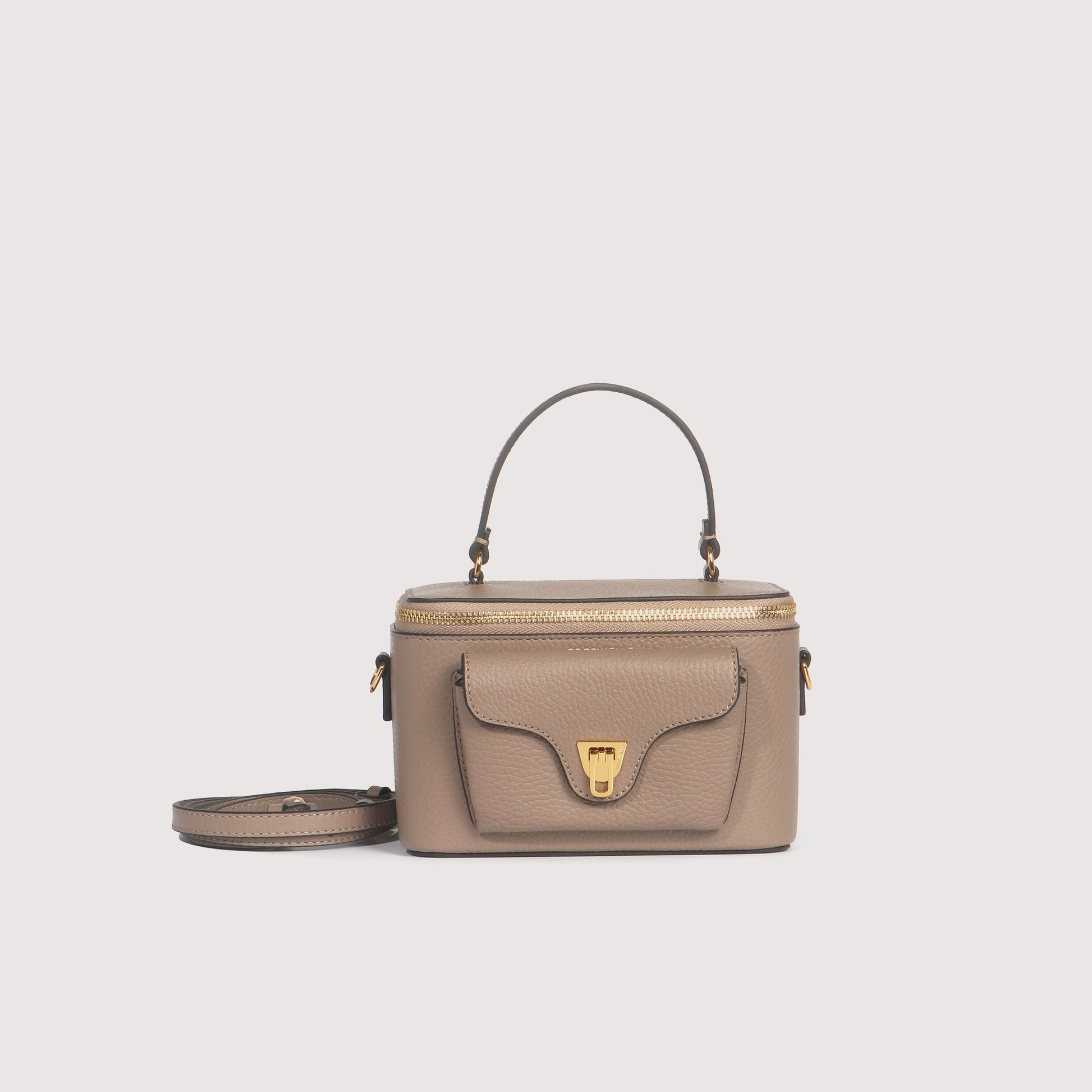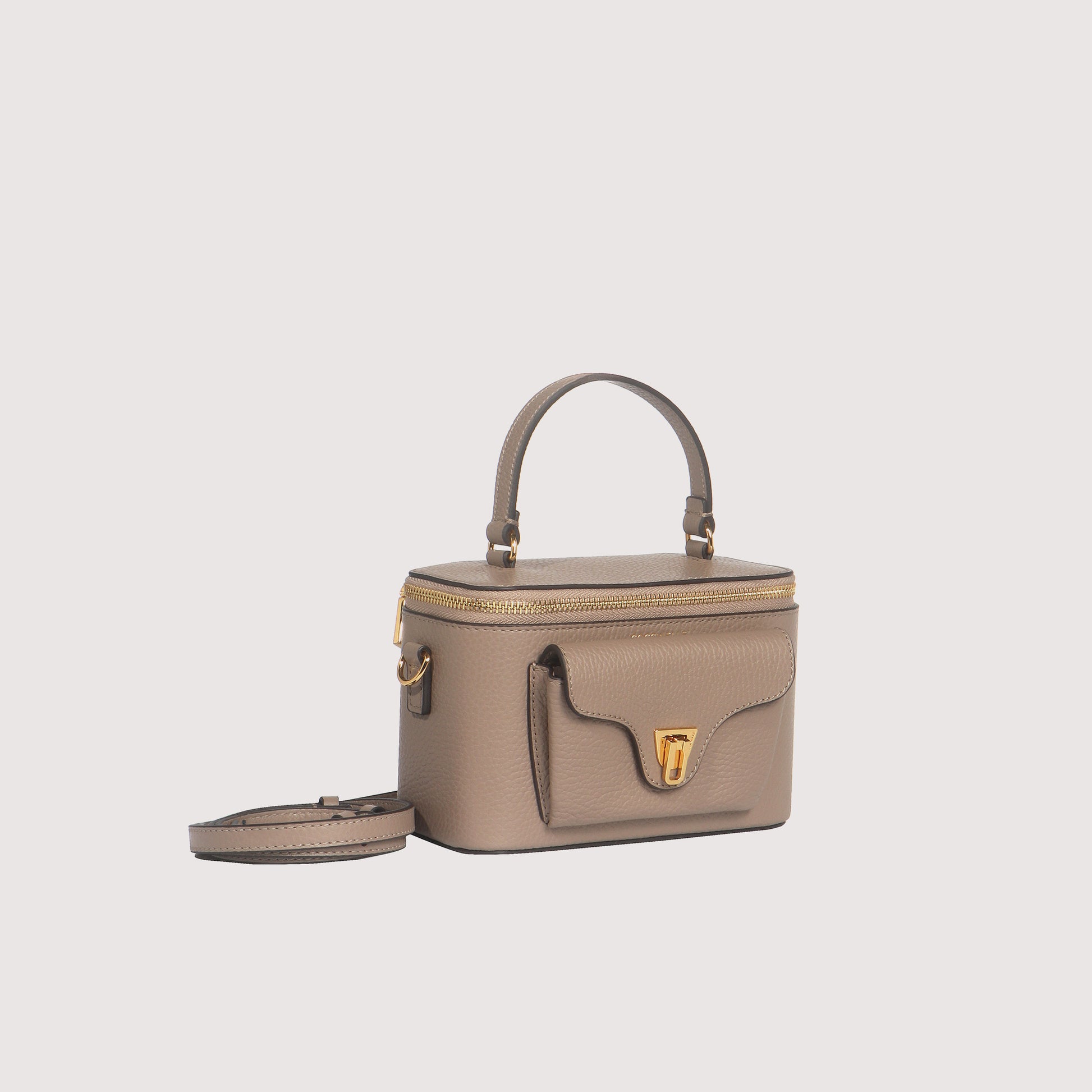 Coccinelle Beat is one of the brand’s iconic lines: the distinctive flap closure with plectrum is the symbol of Coccinelle’s identity. This mini vanity case with leather shoulder strap is a perfect mix of structure and softness, practicality and contemporary design. This model is made with leather processed using specialised machines and then tumbled to maintain its softness. This is a very robust, easy to clean leather, making it ideal for everyday use.INFORMATIONS ABOUT THE PRODUCT