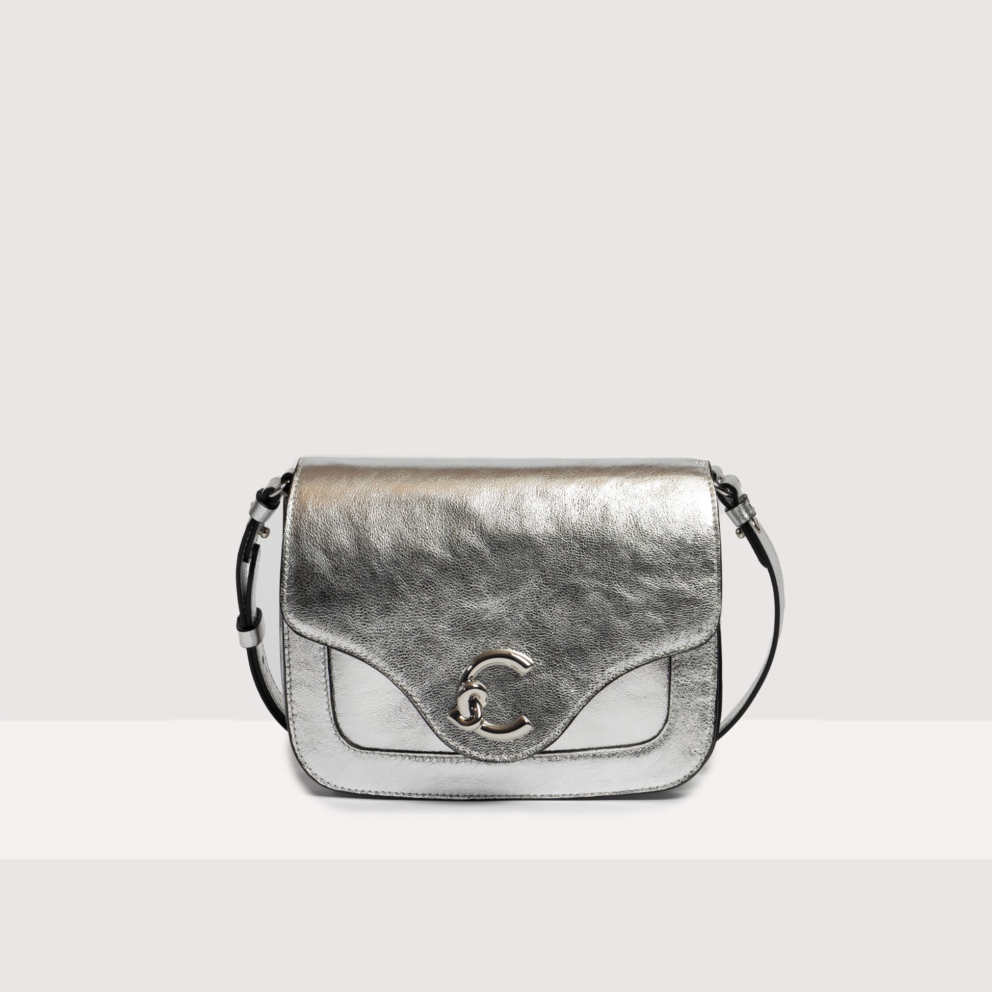 Crossbody portability Smooth leather with a metallic effect C-Me metal detail Magnet closure Adjustable and detachable strap Frontal pocket Three inner compartments Inner pocket with zip Gusseted construction Gold plating Logo metal letters In order to best preserve this product, it is advisable to be careful about using overly aggressive detergents or sanitising gels that could ruin the accessories with which they come into direct contact Dimension: 21 X 17 X 6cm - 800g REF: E1 SUB 15 01 01 Y69- Size : 21X17X6 CM.