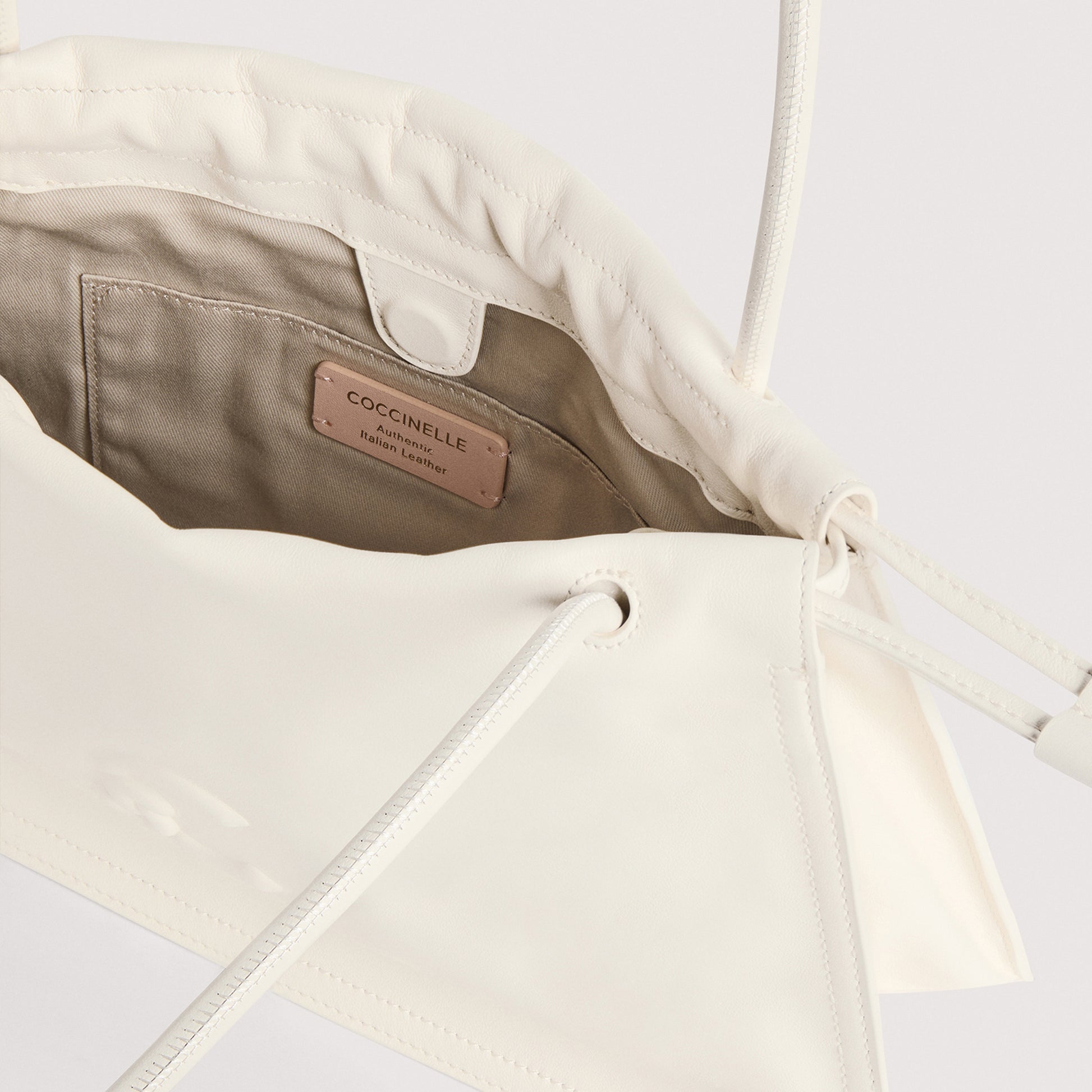 ผลิตจากหนังเรียบ ไลน์ Coccinelle Dulse เน้นความหรูหราของวัสดุด้วยการจับจีบที่นุ่มนวลโดดเด่น เชือกรูดหนังรวบรวมรูปทรงที่กว้างขวางของกระเป๋าเหล่านี้ ผสมผสานความกว้างขวางเข้ากับเสน่ห์ที่หรูหราและโรแมนติก เส้นสายโดดเด่นด้วยโลโก้ C-Me ใหม่ ซึ่งสร้างขึ้นโดยใช้เทคนิคการพิมพ์ลายนูนอันเป็นเอกลักษณ์บนหนัง รุ่นนี้ทำจากหนังเรียบฟอกด้วยน้ำมันพิเศษที่ให้สัมผัสนุ่ม แม้จะมีรูปลักษณ์ที่นุ่มนวล แต่หนังก็ทนทานต่อสภาพอากาศด้วยการใช้เรซินที่ทำให้หนังกันน้ำได้เล็กน้อยแต่ยังคงรูปลักษณ์ที่เป็นธรรมชาติไว้รายละเอียดสินค้า