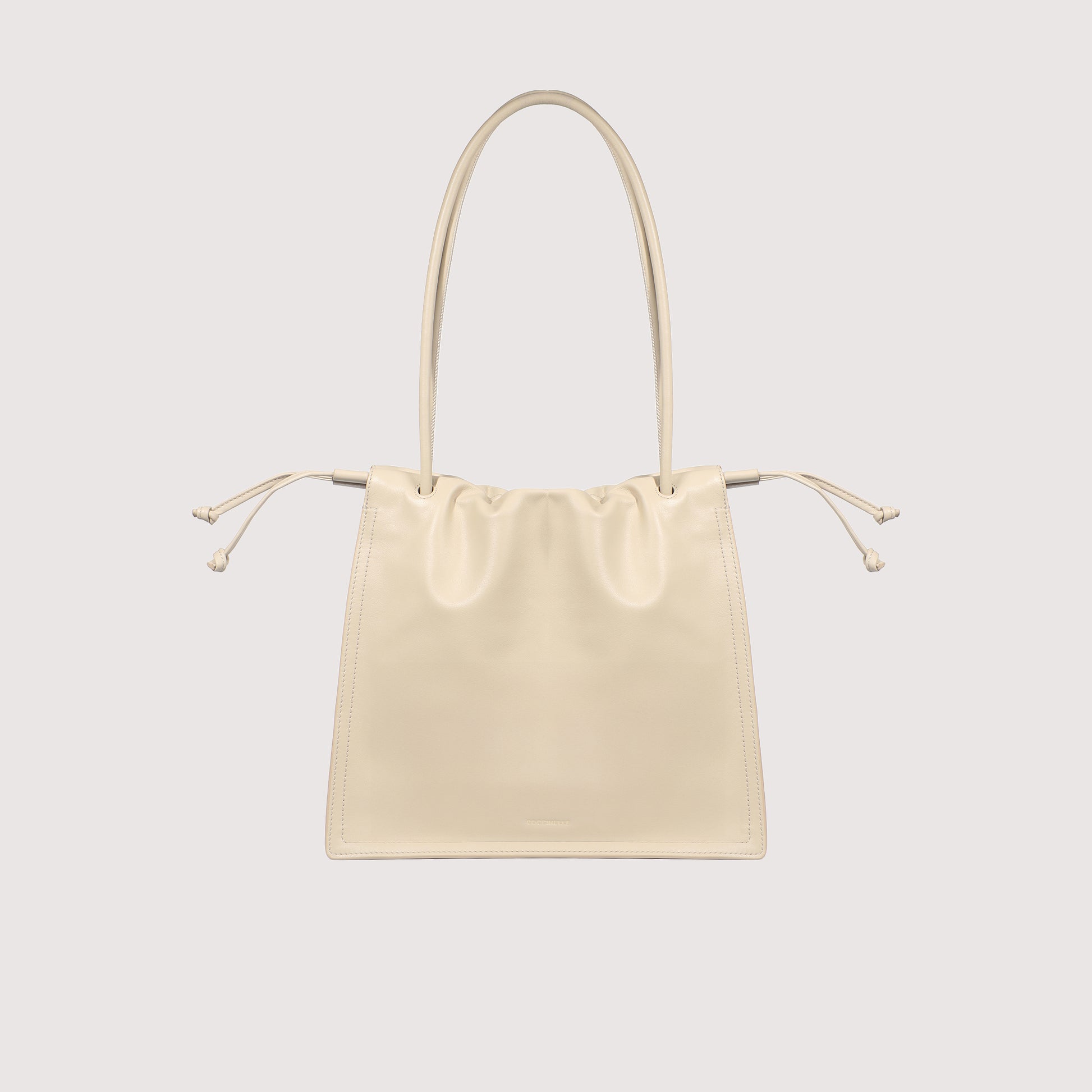 Made of smooth leather, the Coccinelle Dulse line enhances the elegance of the material with its soft pleats. A leather drawstring encloses all the volume of these capacious bags with an elegant and romantic attitude. Characterising the line is the new C-Me logo, made in a special embossed process on the leather. This model is made with smooth leather, tanned with special oils that make it soft to the touch. Despite its silky appearance, the leather is weather-resistant thanks to the use of resins that make the leather slightly waterproof while maintaining its natural appearance.INFORMATIONS ABOUT THE PRODUCT