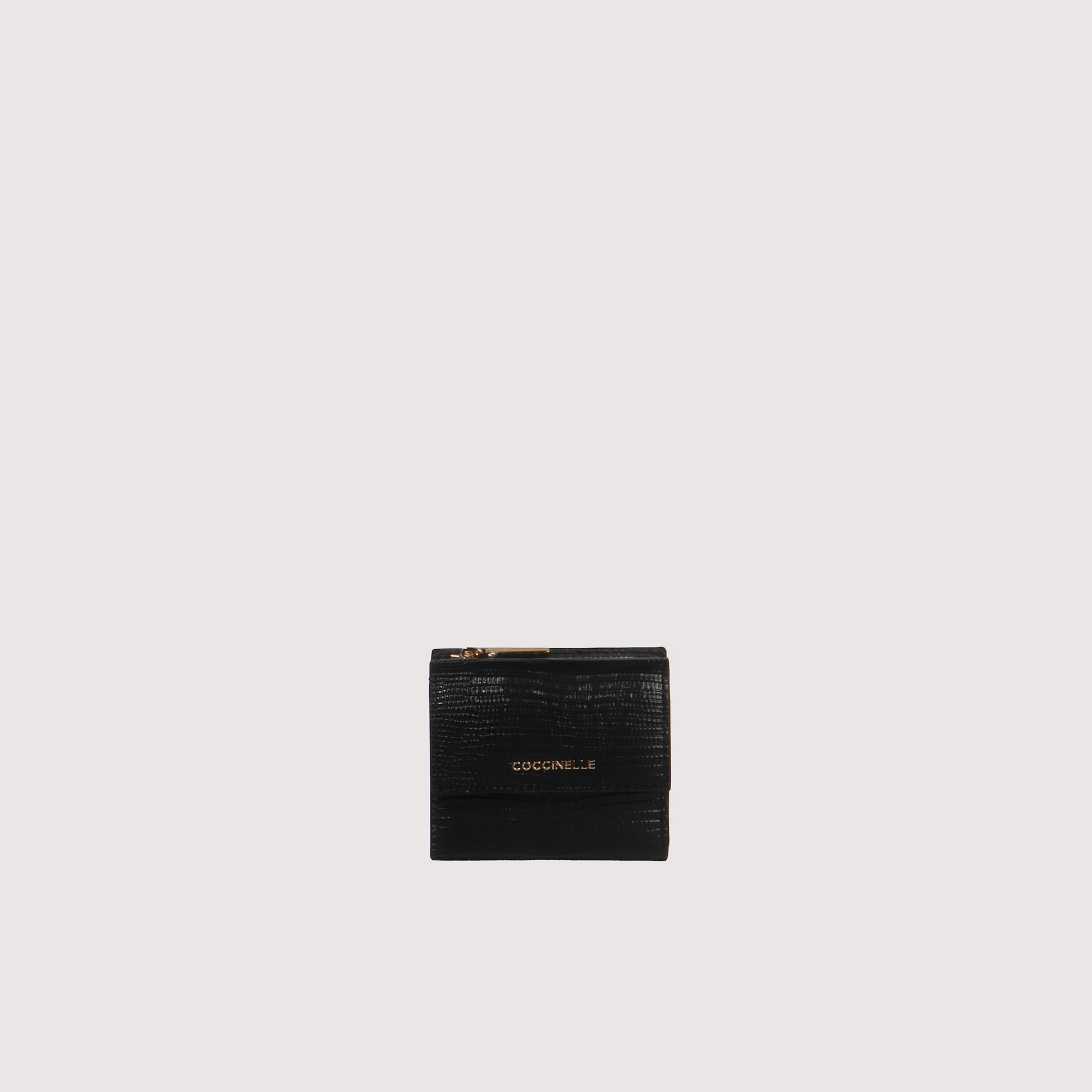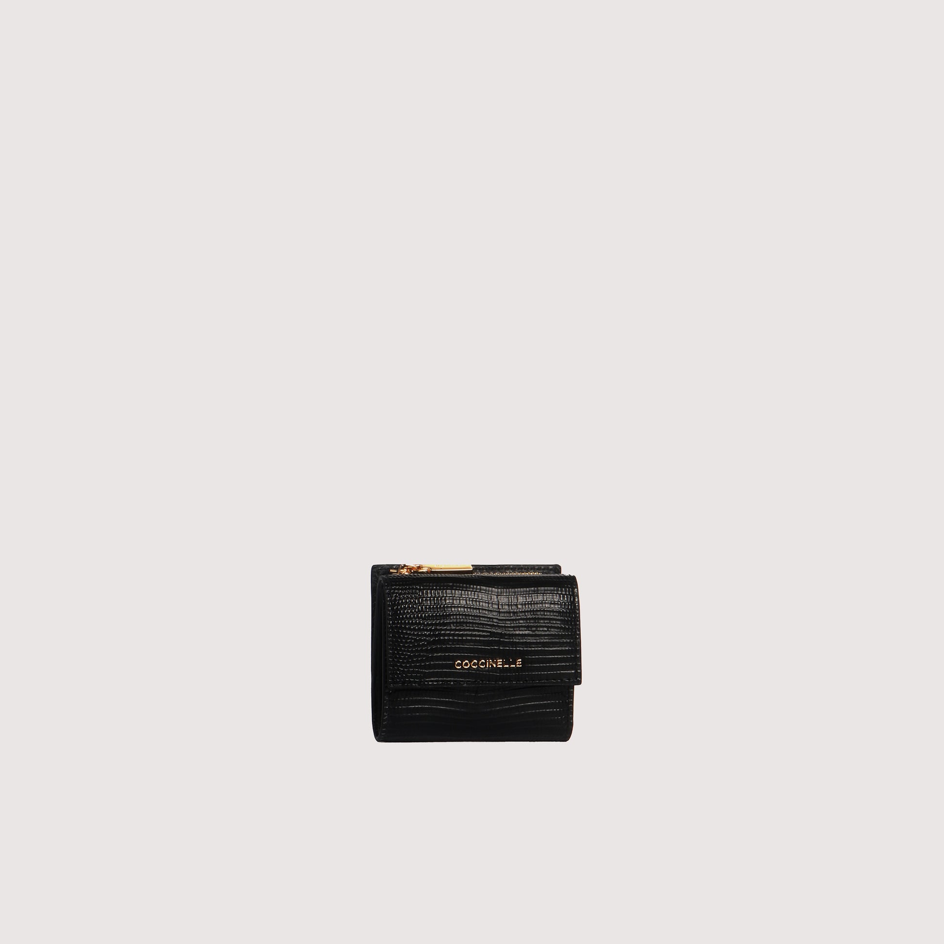 This mini wallet with a flap from the Metallic line is embellished with the Coccinelle logo in metal. Its space is well organised to tote all your necessary items neatly and carefully. This model is made with leather processed using specialised machines and then tumbled to maintain its softness. This is a very robust, easy to clean leather, making it ideal for everyday use.INFORMATIONS ABOUT THE PRODUCT