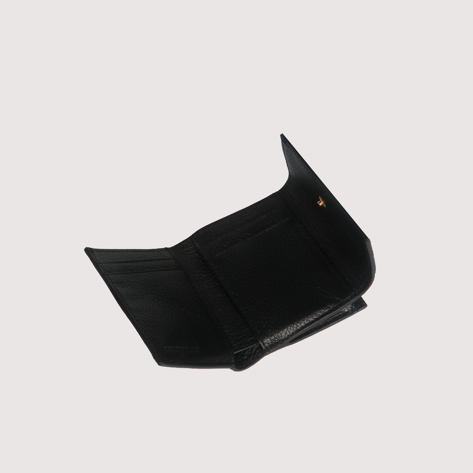 Small wallet Grained leather Zipped coin purse on the back Five card holder Banknote holder Two internal gussets RFID protection Light gold plating Logo metal letters Dimension: 10X8X0 cm - 90 g REF: E2 MW5 11 B8 01 011- Size : 10X8X0 CM.