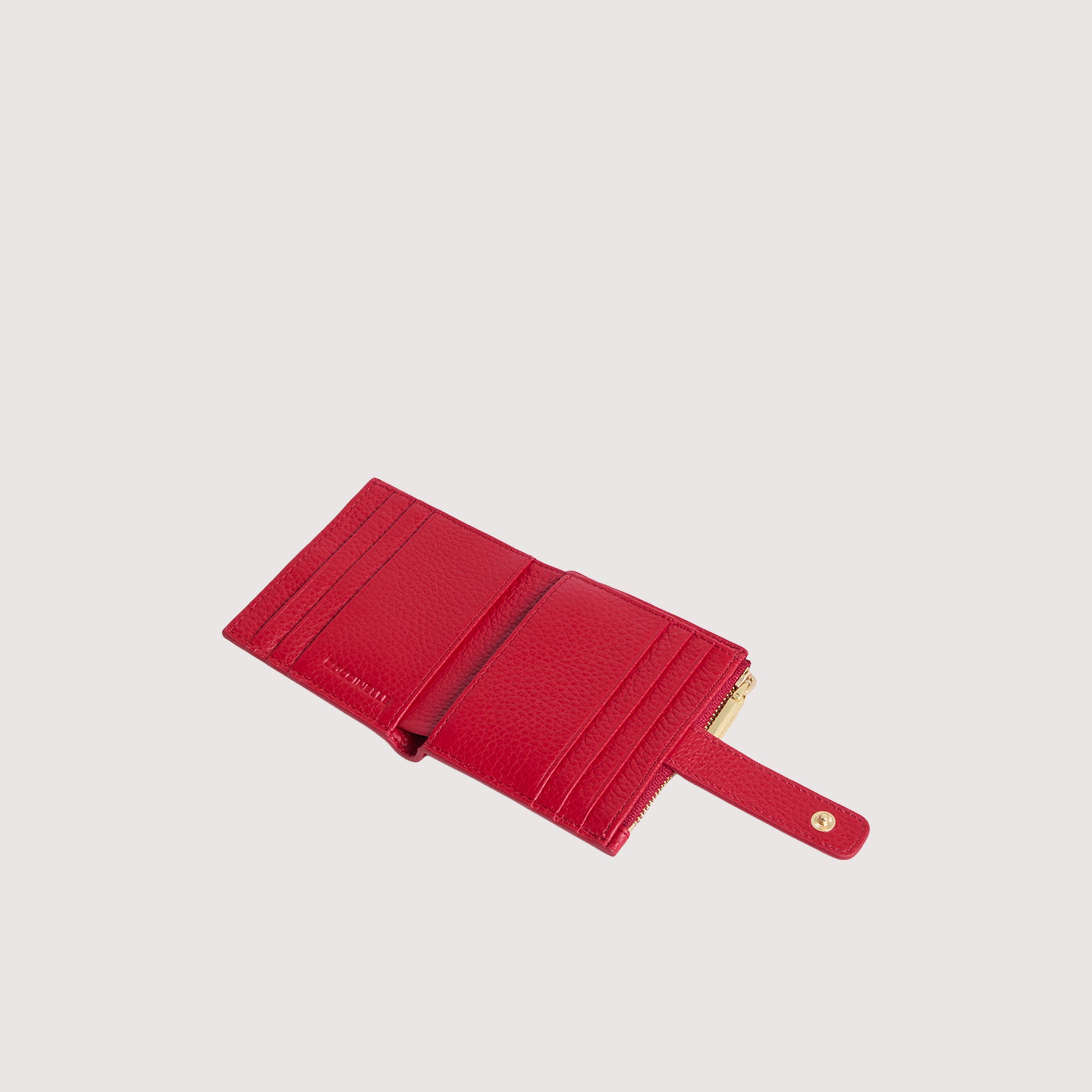 กระเป๋าสตางค์ใบเล็ก |หนังวัวลายเกรน | ปิดด้วยกระดุมแป๊ก | กระเป๋าสตางค์ใส่เหรียญด้านในแบบมีซิป | ที่ใส่บัตร 6 ใบ | ที่ใส่ธนบัตร | เสริมด้านใน 2 ช่อง | ระบบป้องกัน RFID | ชุบทองอ่อน | อักษรโลโก้เมทัลลิก ขนาด: 10x10 ซม. - 90 ก. REF: E2 MW5 11 F7 01 R02