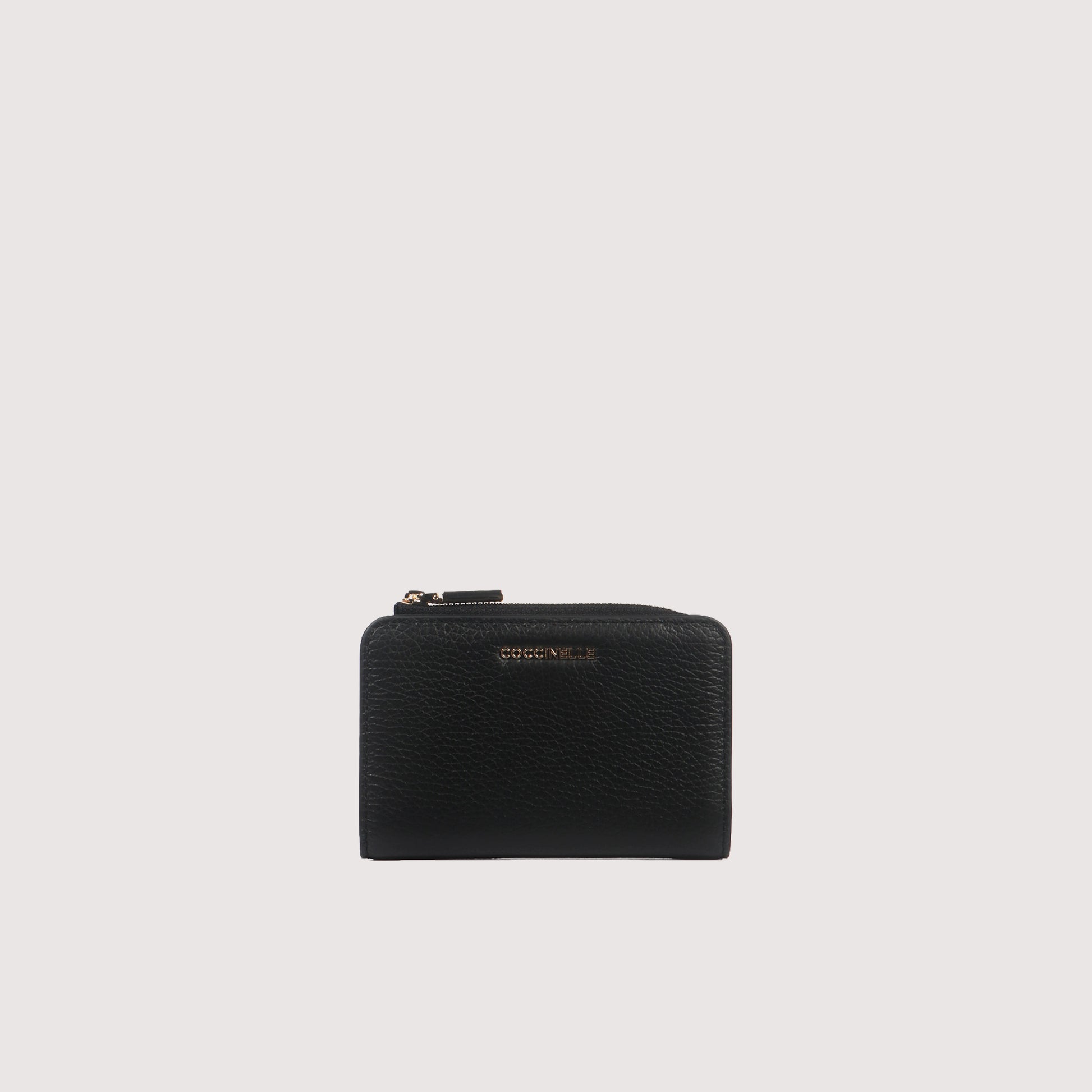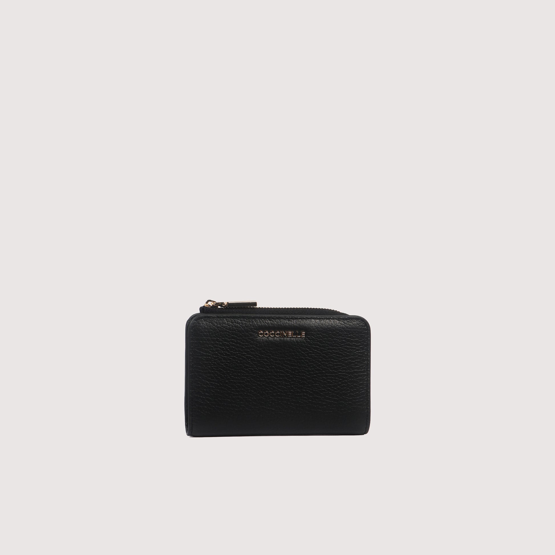 This wallet from the Metallic line features a side zip for a coin compartment and is embellished with the metal Coccinelle logo. Its space is well organised for storing your essentials neatly and carefully. This model is made with leather processed using specialised machines and then tumbled to maintain its softness. This is a very robust, easy to clean leather, making it ideal for everyday use.INFORMATIONS ABOUT THE PRODUCT