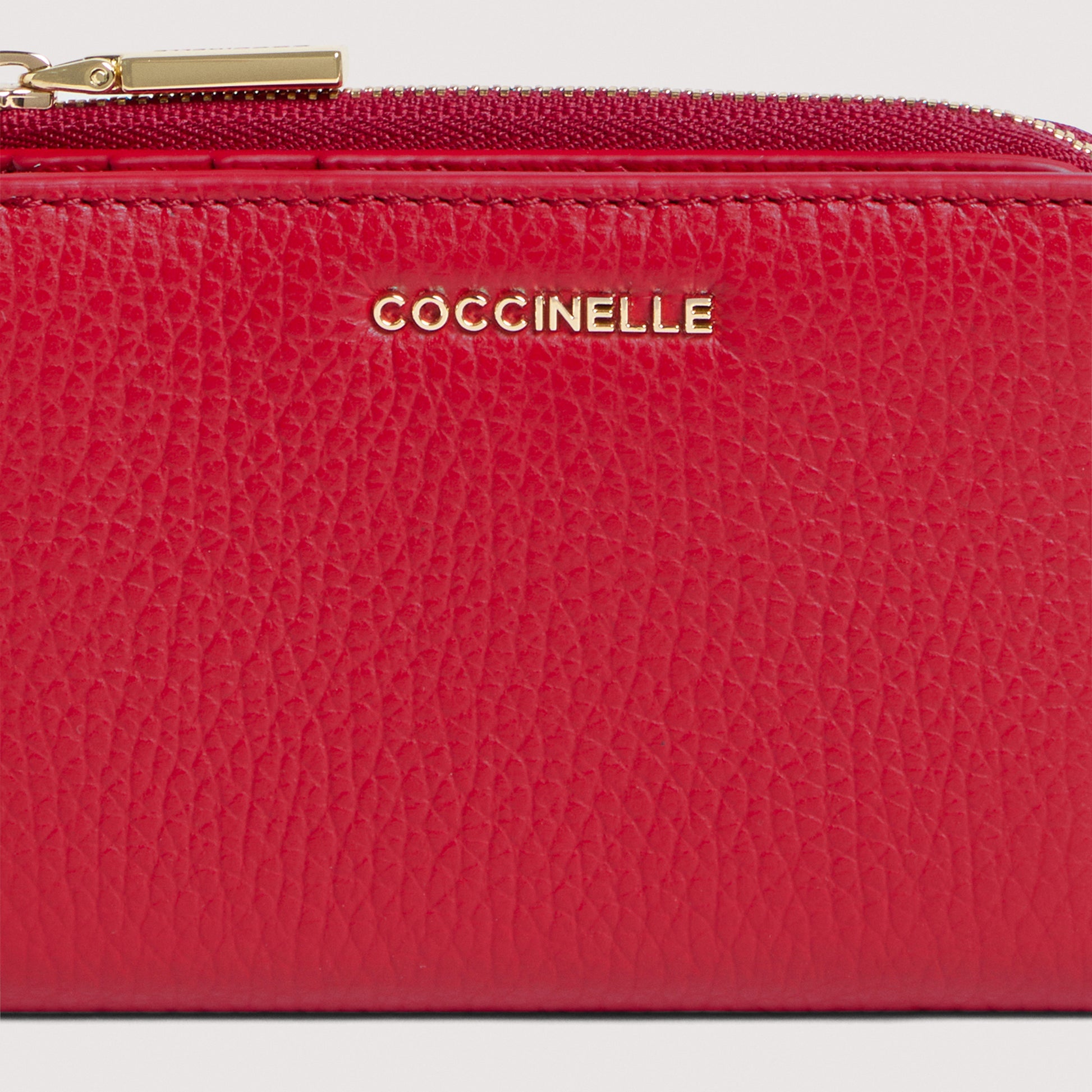 กระเป๋าสตางค์รุ่น Metallic รุ่นนี้มาพร้อมซิปด้านข้างสำหรับช่องใส่เหรียญ และประดับด้วยโลโก้โลหะของ Coccinelle ภายในถูกจัดสรรพื้นที่ไว้อย่างดี ทำให้เก็บของจำเป็นได้อย่างเป็นระเบียบและปลอดภัย รุ่นนี้ทำจากหนังที่ผ่านการขึ้นรูปด้วยเครื่องจักรเฉพาะทาง และนำไปผ่านกระบวนการทัมเบิลเพื่อคงความนุ่มของหนัง เป็นหนังที่มีความทนทาน ทำความสะอาดง่าย เหมาะสำหรับการใช้งานในชีวิตประจำวันอย่างยิ่งรายละเอียดสินค้า