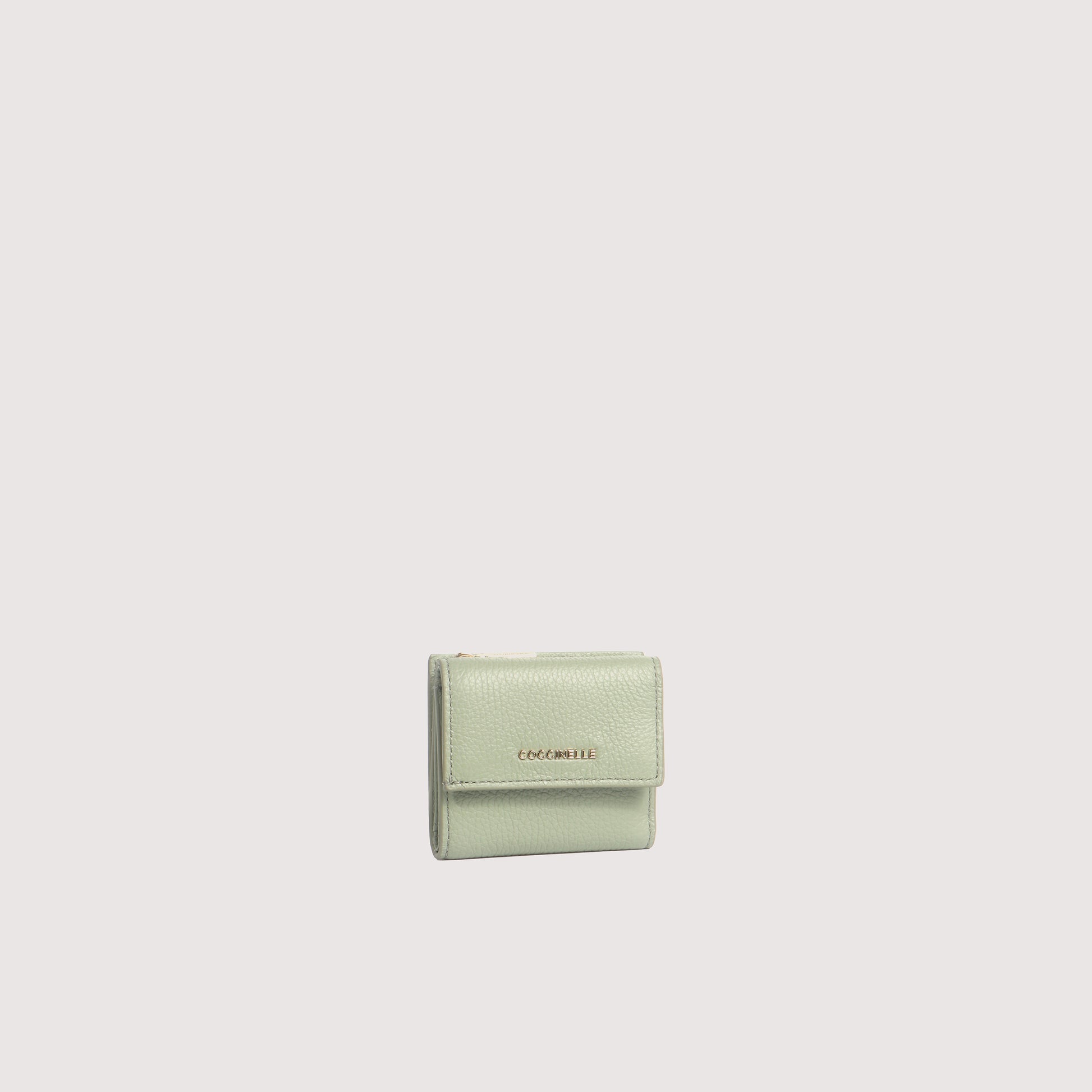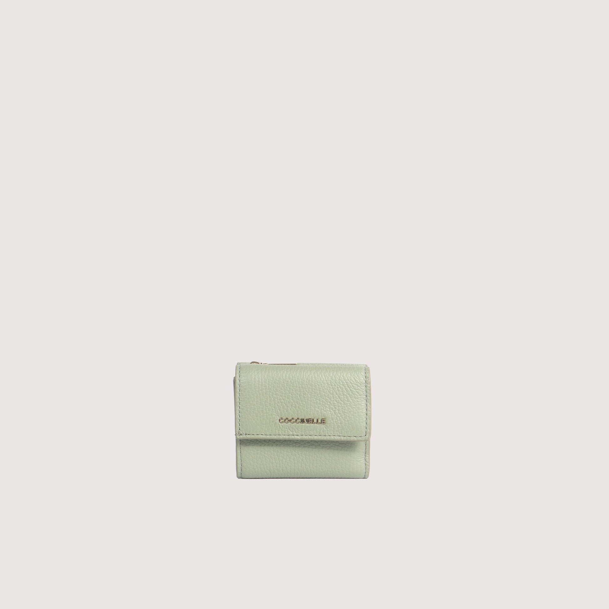This mini wallet with a flap from the Metallic line is embellished with the Coccinelle logo in metal. Its space is well organised to tote all your necessary items neatly and carefully. This model is made with leather processed using specialised machines and then tumbled to maintain its softness. This is a very robust, easy to clean leather, making it ideal for everyday use.INFORMATIONS ABOUT THE PRODUCT