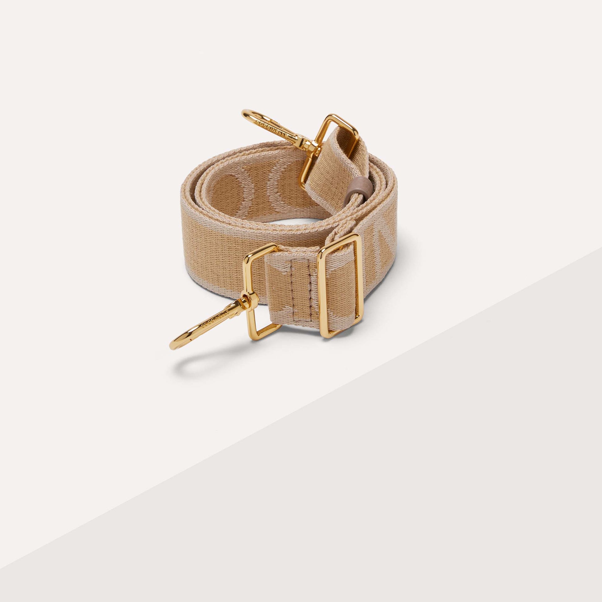 Fabric shoulder strap with maxi Coccinelle logo. Adjustable with sliding ring. Perfect for personalising your bag. - Ribbon | For carrying across the body | Adjustable with sliding buckle | Height: 4 cm | Length: min. 89 cm, max. 142 cm | Gold plating | Dimensions: 150 gINFORMATIONS ABOUT THE PRODUCT