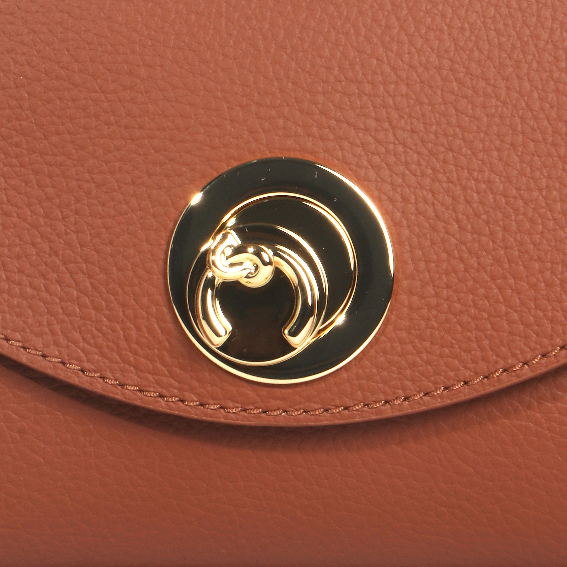 For carrying on the shoulder or across the body|Two-sided leather|Turn lock closure with C-Me logo|Adjustable and detachable handle|Inner zipped pocket|Inner partition|Pocket on the back|Light Gold plating|Gold stamped logo|In order to best preserve this product, it is advisable to be careful about using overly aggressive detergents or sanitising gels that could ruin the accessories with which they come into direct contact Dimensions: 35X21X15 cm - 770 g REF: E1 TOA 12 01 01 682- Size : 35X21X15 CM.