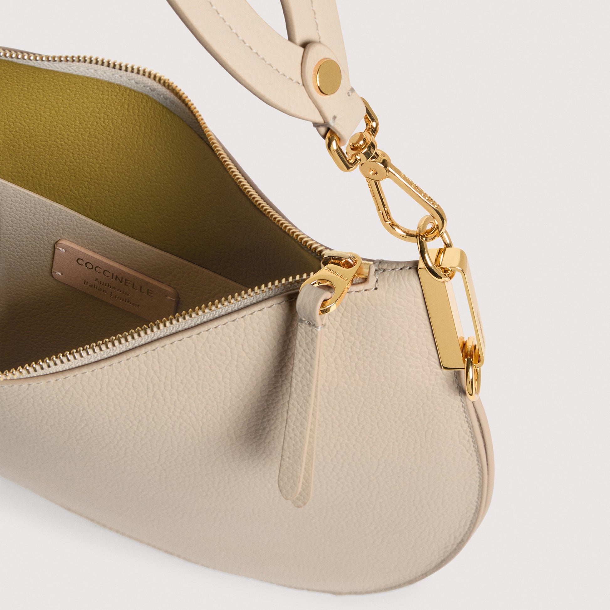 ความกลมกล่อมของรูปทรงที่สะท้อนอยู่ในชื่อ คือจุดเด่นของกลุ่มผลิตภัณฑ์ Coccinelle Sunup ที่จับเป็นองค์ประกอบที่โดดเด่นของเส้นสาย ซึ่งจำลองมาจากส่วนโค้งเว้าของผู้หญิงแบบเดียวกับที่วาดลวดลายที่คดเคี้ยว ให้ความรู้สึกถึงความแปลกใหม่ หนังสองด้านช่วยเพิ่มความนุ่มนวลและความเบาของกระเป๋า เนื่องจากการตกแต่งภายในไม่มีซับใน จึงเพิ่มลูกเล่นดั้งเดิมด้วยการเล่นสีที่ตัดกัน นาฬิการุ่นนี้ผลิตด้วยหนังที่ผ่านกรรมวิธีด้วยเครื่องจักรพิเศษ จากนั้นจึงปั่นเพื่อให้ได้ผิวสัมผัสที่นุ่มนวลเป็นพิเศษ หนังประเภทนี้มีการลงสีทั้งสองด้านเพื่อสร้างเอฟเฟกต์แบบสองด้าน ทำจากวัสดุที่แข็งแรงทนทาน จึงเหมาะสำหรับการใช้งานในชีวิตประจำวัน