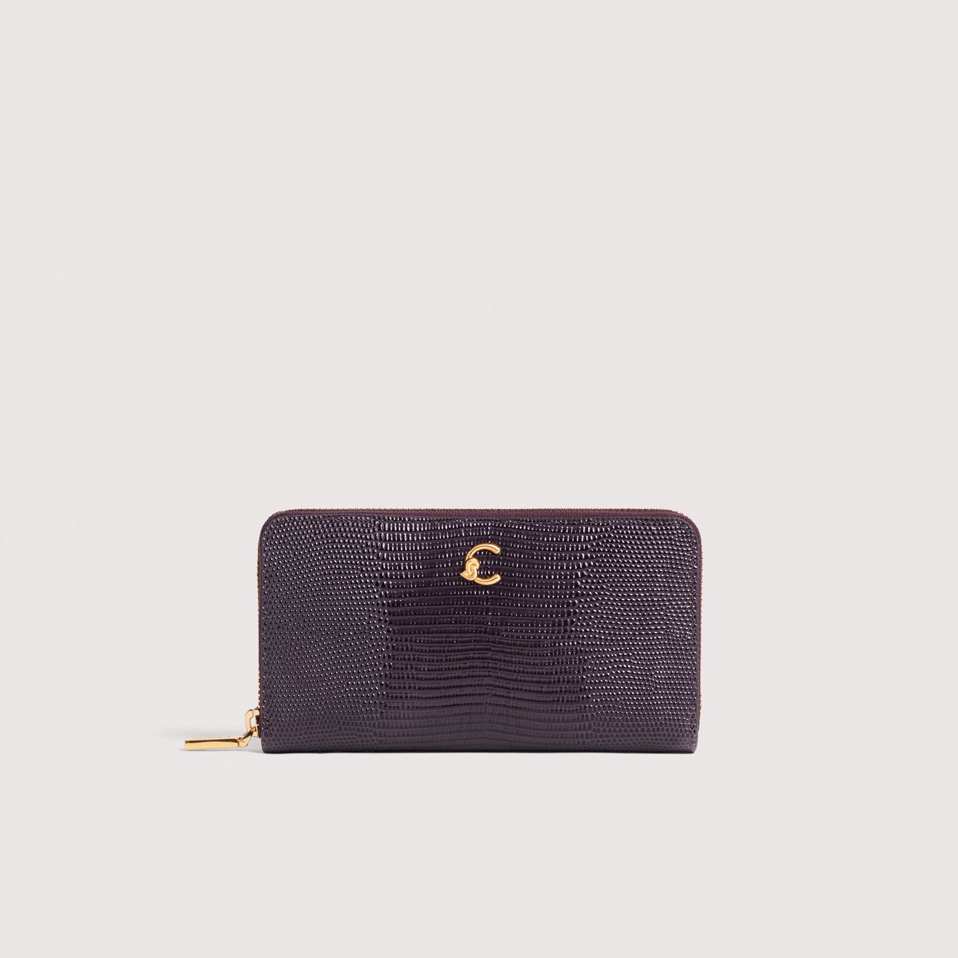 กระเป๋าสตางค์ Continental หนังพิมพ์ลาย Lizard รายละเอียดโลโก้ C-Me ซิปโลหะ ช่องใส่เหรียญด้านในพร้อมซิป ช่องใส่บัตร 7 ช่อง ช่องด้านใน 8 ช่อง ช่องใส่เอกสารแบบใส 2 ช่อง การป้องกัน RFID ชุบทอง ตัวอักษรโลหะโลโก้ ขนาด: 18X10X0 ซม. - 210 กรัม REF: E2 TBN 11 32 01 V87- ขนาด : 18X10X0 ซม.