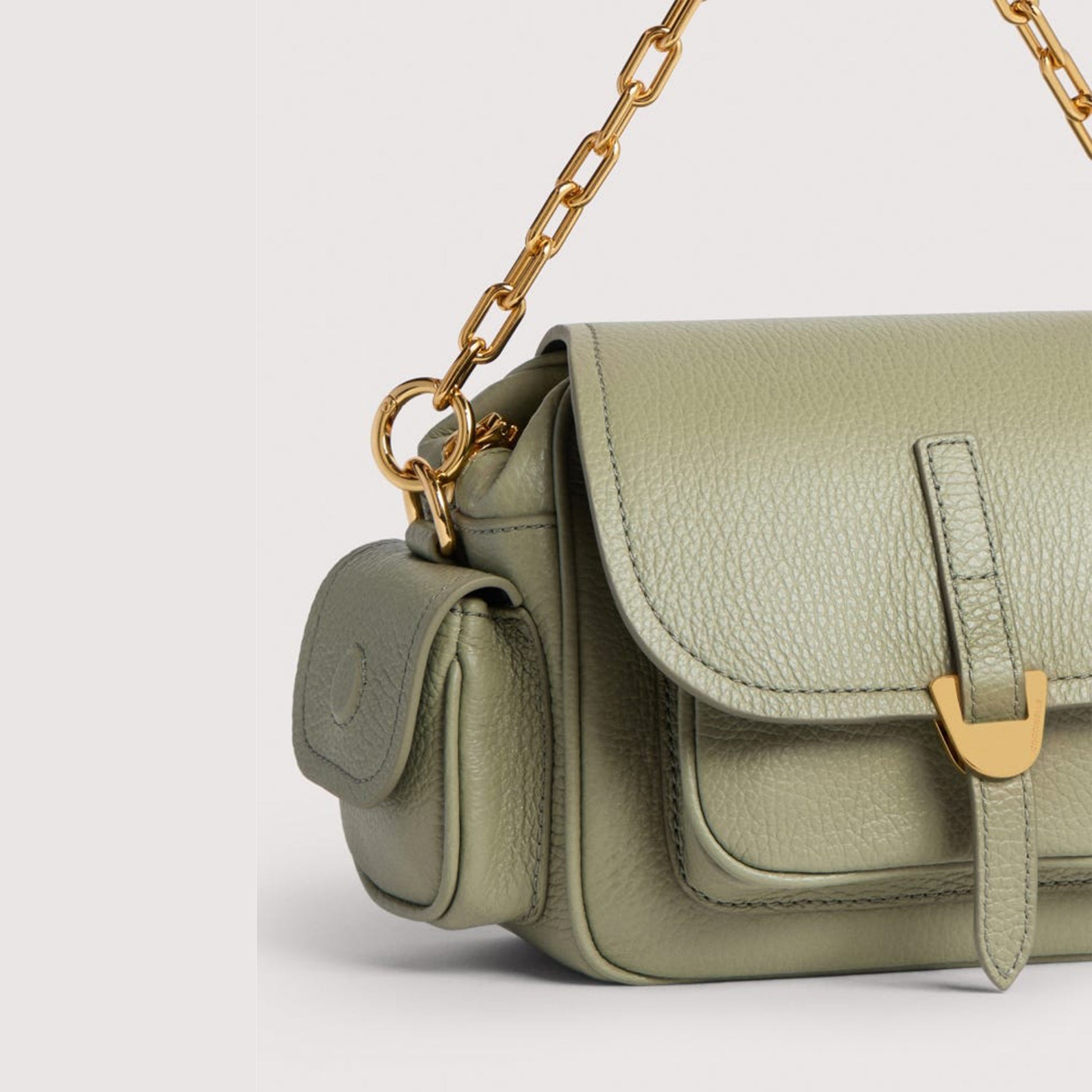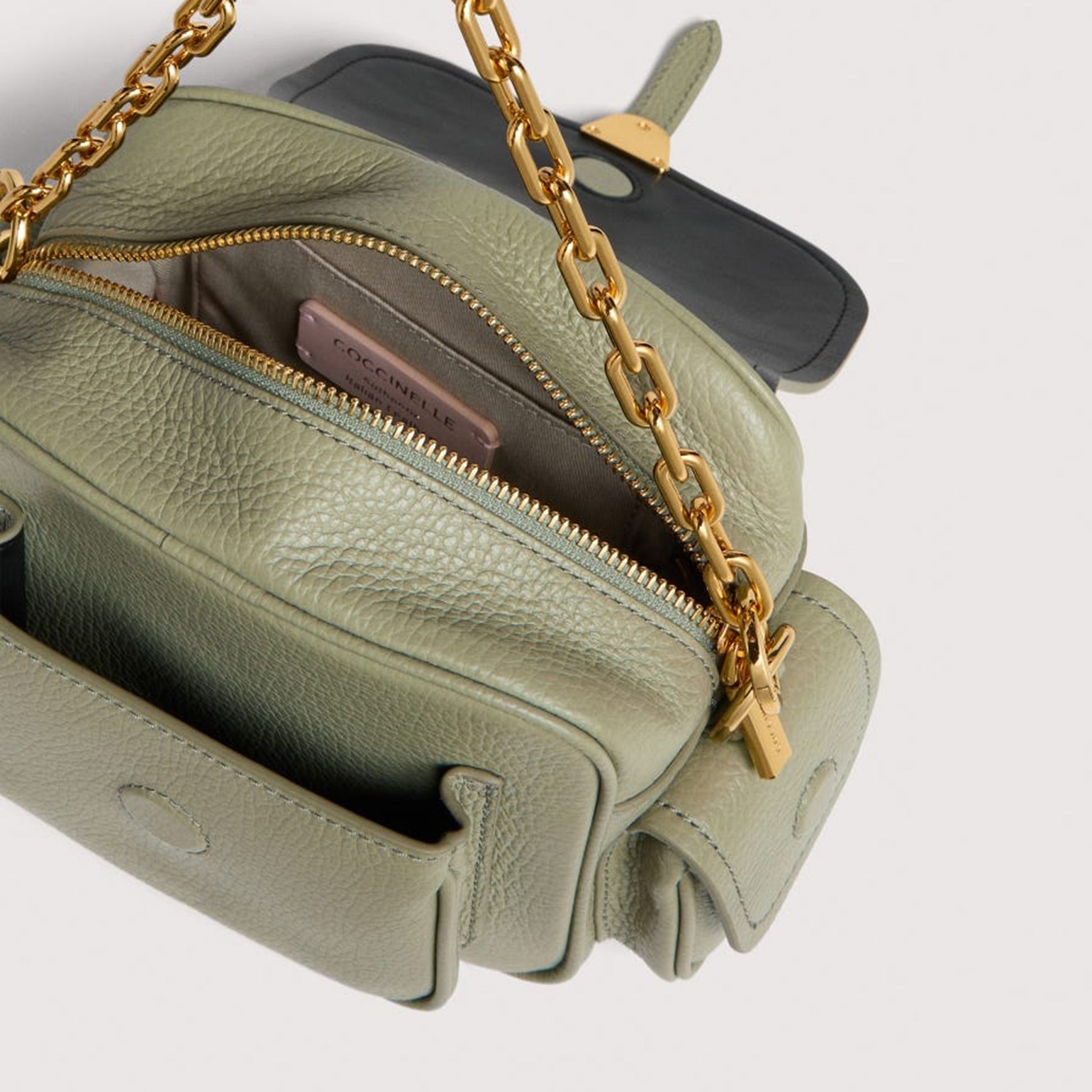 Coccinelle Campus ผสมผสานรายละเอียดเอกลักษณ์ของ Coccinelle เข้ากับสไตล์ของกระเป๋าเอกสารสไตล์คลาสสิกของวิทยาลัยอย่างเชี่ยวชาญ ผลลัพธ์ที่ได้คือจิตวิญญาณที่เยือกเย็นและน่าดึงดูด พร้อมด้วยรายละเอียดเมทัลลิกในรูปทรงปิ๊กอันเป็นเอกลักษณ์ กระเป๋าใบเล็กที่สมบูรณ์แบบซึ่งโดดเด่นด้วยสไตล์สากลและการออกแบบที่มีช่องกระเป๋าหลายช่อง ทำให้มีพื้นที่จัดเก็บเพิ่มเติมสำหรับของใช้ส่วนตัวด้วยแผ่นปิดและซิปด้านใน ที่จับแบบโซ่ผสมผสานกับสายสะพายหนังช่วยเติมเต็มดีไซน์ จึงสามารถถือแบบถือหรือสะพายข้างก็ได้ นี้ผลิตด้วยหนังที่ผ่านกรรมวิธีด้วยเครื่องจักรพิเศษ จากนั้นจึงกลิ้งเพื่อรักษาความนุ่มของหนัง หนังประเภทนี้มีความทนทานมากและทำความสะอาดง่าย จึงเหมาะสำหรับการใช้งานในชีวิตประจำวันรายละเอียดสินค้า