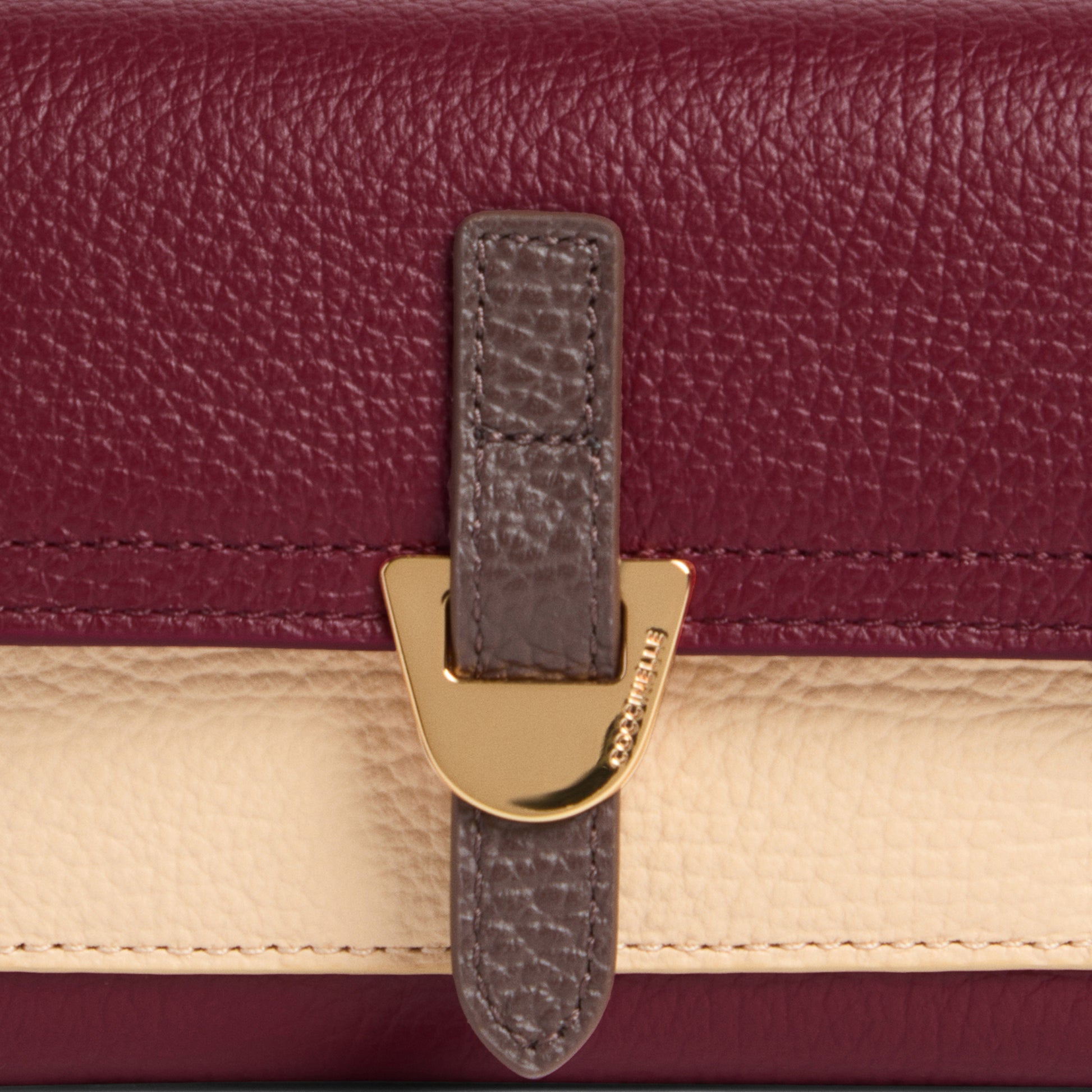กระเป๋าสตางค์ที่มีฝาปิดจากกลุ่ม Coccinelle Campus ใบนี้ประดับด้วยรายละเอียดรูปปิ๊กโลหะ มีพื้นที่จัดวางอย่างดีเพื่อใส่สิ่งของที่จำเป็นทั้งหมดได้อย่างเรียบร้อยและระมัดระวัง นาฬิการุ่นนี้ผลิตด้วยหนังที่ผ่านกรรมวิธีด้วยเครื่องจักรพิเศษ จากนั้นจึงกลิ้งเพื่อรักษาความนุ่มของหนัง หนังประเภทนี้มีความทนทานมากและทำความสะอาดง่าย จึงเหมาะสำหรับการใช้งานในชีวิตประจำวัน
