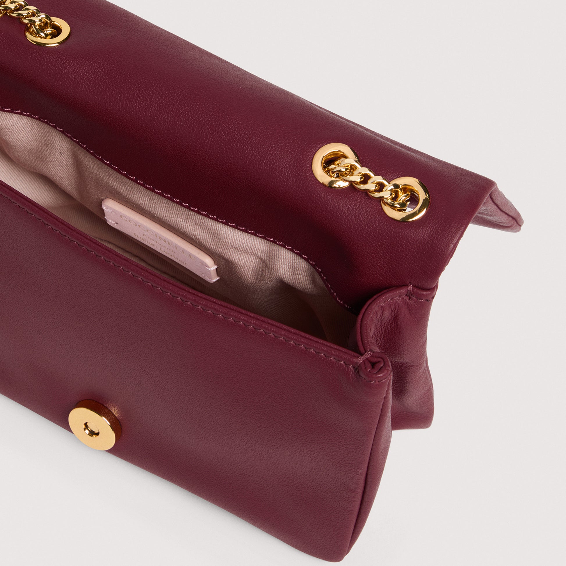 กระเป๋ามินิ Coccinelle Dulse ผลิตจากหนังเรียบ โดดเด่นด้วยสายสะพายไหล่แบบโซ่เลื่อน โดดเด่นด้วยโลโก้ C-Me แบบใหม่ รังสรรค์ขึ้นด้วยเทคนิคการปั๊มนูนอันเป็นเอกลักษณ์บนหนัง รุ่นนี้ทำจากหนังเรียบ ฟอกด้วยน้ำมันชนิดพิเศษ ให้สัมผัสนุ่มละมุน แม้หนังจะดูนุ่มลื่น แต่ยังคงความทนทานต่อสภาพอากาศด้วยเรซินที่ช่วยให้หนังกันน้ำได้เล็กน้อย แต่ยังคงความเป็นธรรมชาติไว้ได้