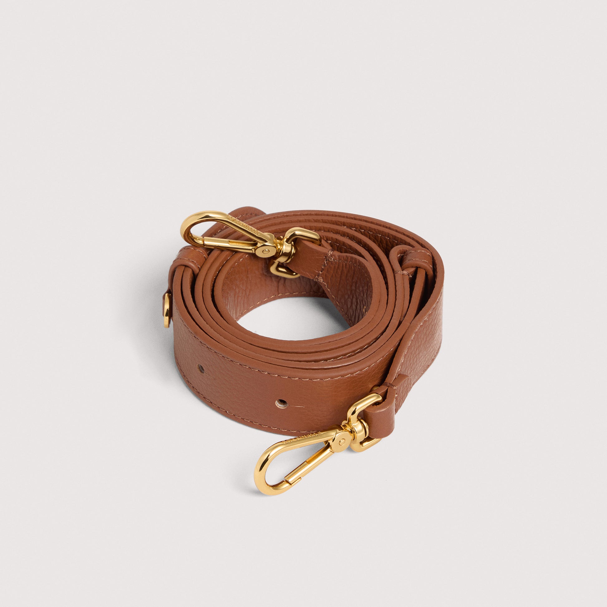 หนังวัวลายเกรน|สายสะพายไหล่ปักโลโก้ Coccinelle|สำหรับสะพายไหล่|สายสะพายปรับได้ด้วยกระดุมติด|ความสูง: 3 ซม.|วงแหวนโลหะขนาดเล็กสำหรับติดจี้|ชุบทอง|ขนาด: 160 กรัม REF: E3 R55 68 01 01 W11