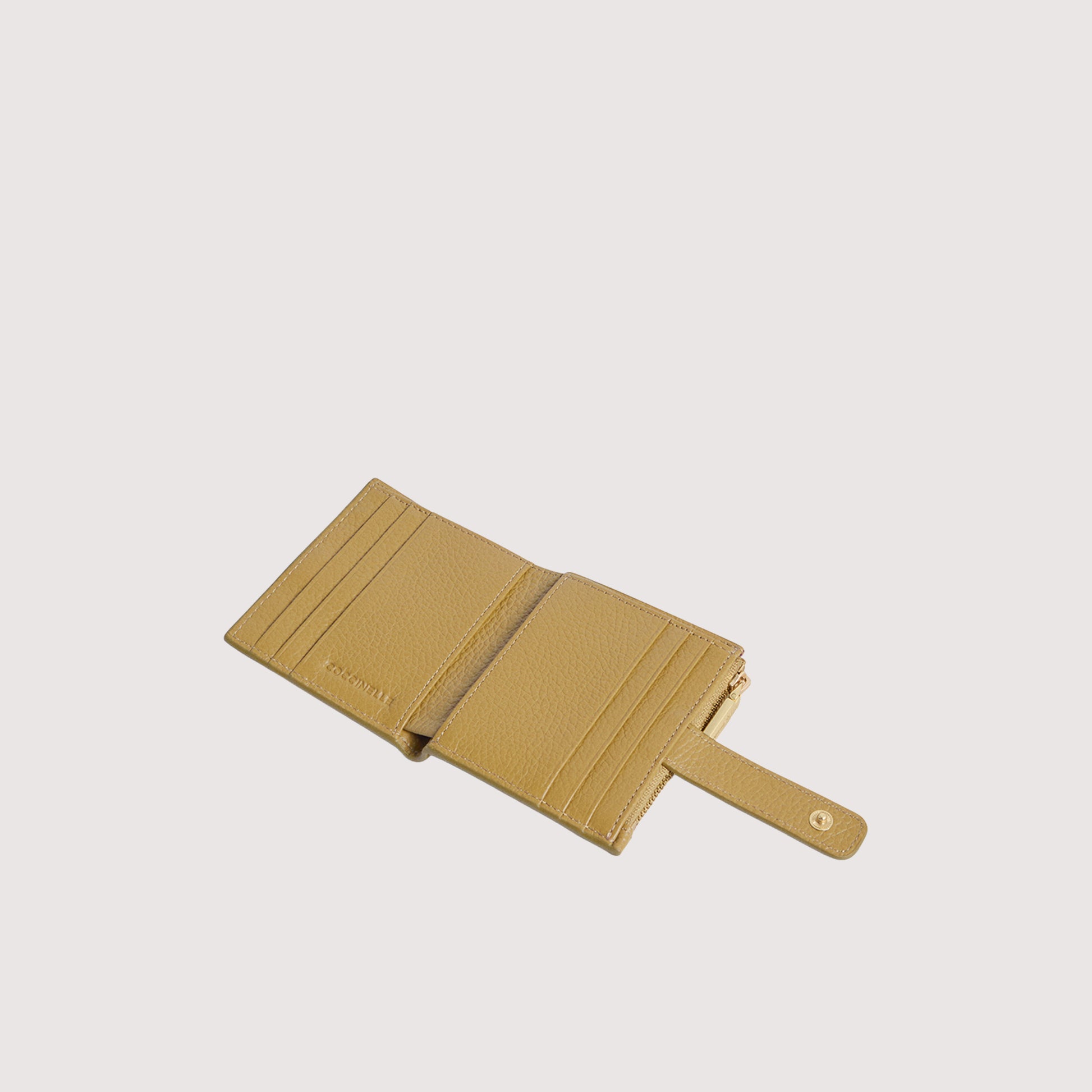 กระเป๋าสตางค์ใบเล็ก |หนังวัวลายเกรน | ปิดด้วยกระดุมแป๊ก | กระเป๋าสตางค์ใส่เหรียญด้านในแบบมีซิป | ที่ใส่บัตร 6 ใบ | ที่ใส่ธนบัตร | เสริมด้านใน 2 ช่อง | ระบบป้องกัน RFID | ชุบทองอ่อน | อักษรโลโก้เมทัลลิก ขนาด: 10x10 ซม. - 90 ก. REF: E2 MW5 11 F7 01 G43