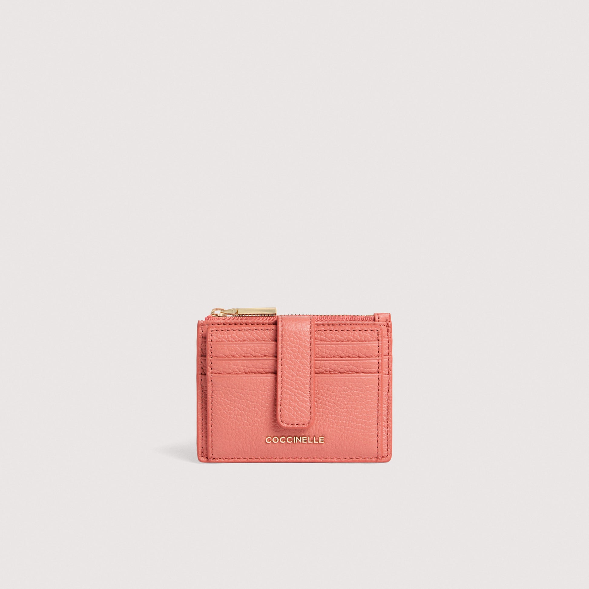 กระเป๋าใส่บัตร หนังวัวลายเกรน กระเป๋าใส่เหรียญแบบมีซิป ช่องใส่บัตรเครดิต 7 ช่อง ชุบทองอ่อน ตัวอักษรโลโก้เมทัลลิก การป้องกัน RFID ขนาด : 11x8x0 ซม. - 60 กรัม REF: E2 MW5 17 27 01 P94- ขนาด : 11X8X0 ซม.
