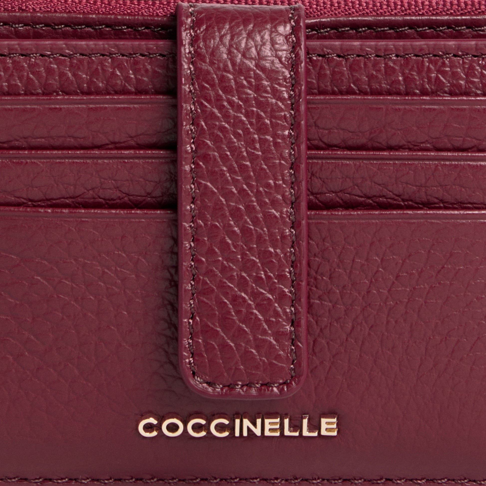 กระเป๋าใส่บัตร หนังวัวลายเกรน กระเป๋าใส่เหรียญแบบมีซิป ช่องใส่บัตรเครดิต 7 ช่อง ชุบทองอ่อน ตัวอักษรโลโก้เมทัลลิก การป้องกัน RFID ขนาด : 11x8x0 ซม. - 60 กรัม REF: E2 MW5 17 27 01 R52
