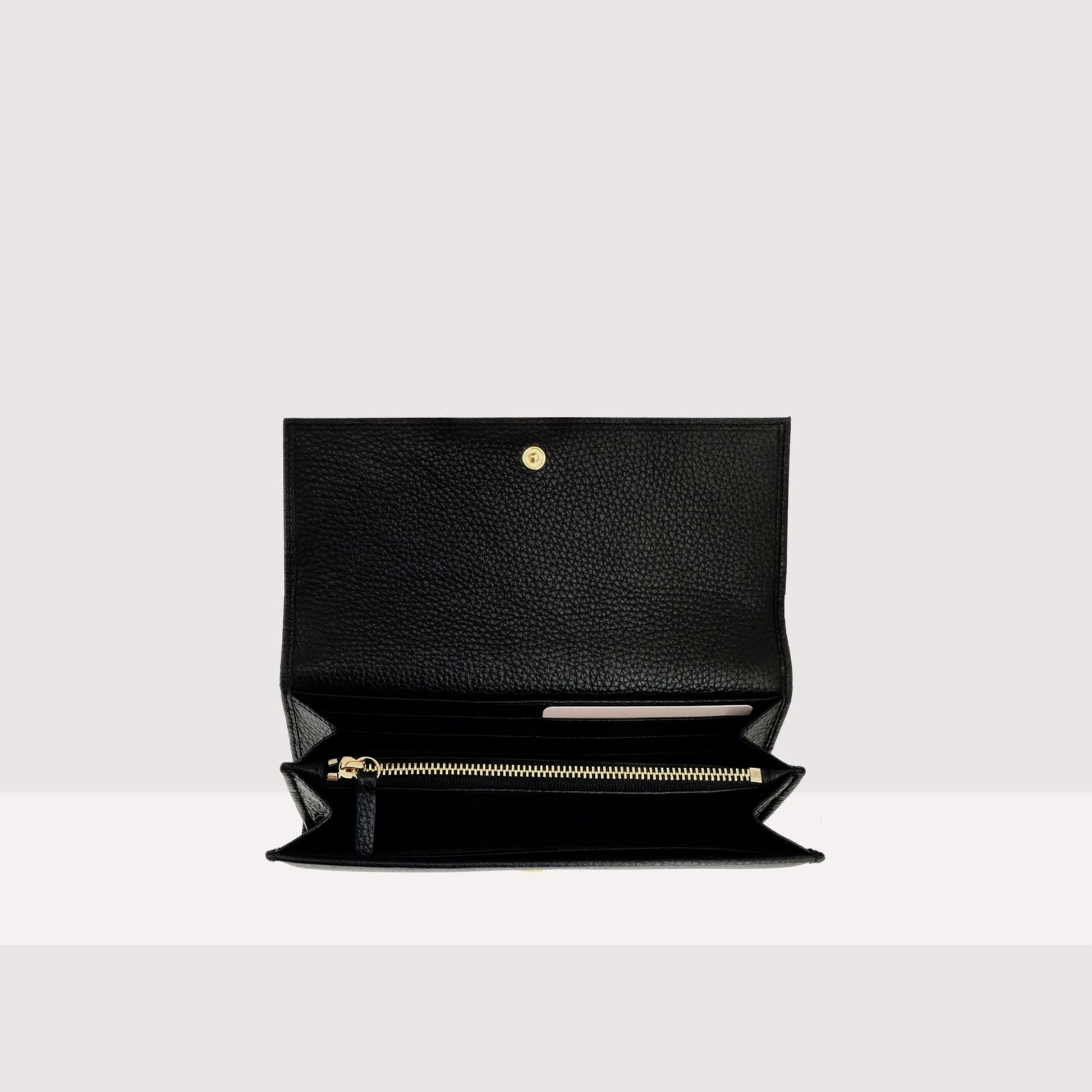 กระเป๋าสตางค์ที่มีฝาปิดจากเส้นเมทัลลิกใบนี้ตกแต่งด้วยโลโก้ Coccinelle แบบโลหะ การใช้พื้นที่ให้เกิดประโยชน์สูงสุดได้รับการออกแบบมาเพื่อให้สิ่งของจำเป็นของคุณเป็นระเบียบและปลอดภัยรายละเอียดสินค้า