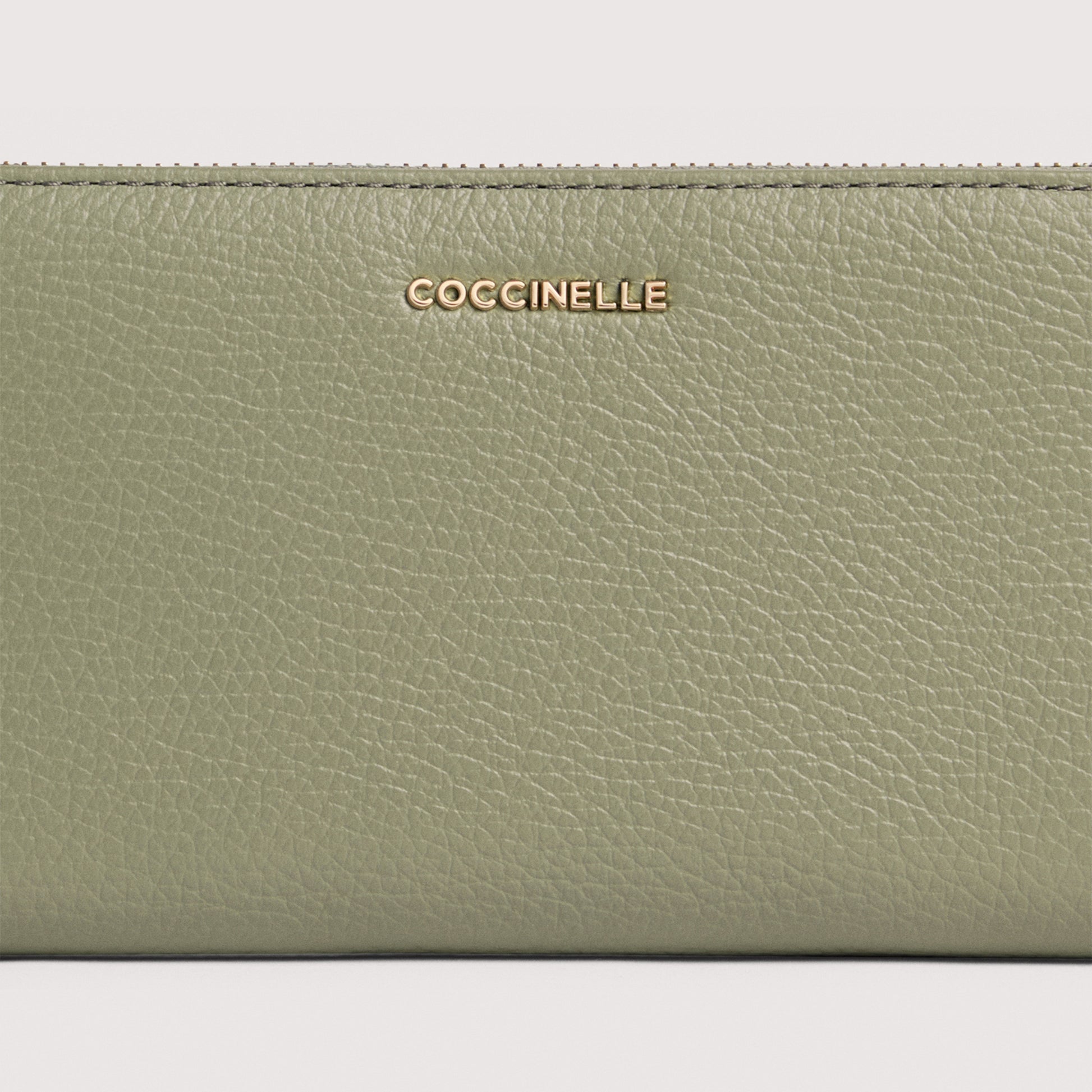 กระเป๋าเงินซิปเมทัลลิกขนาดกว้างขวางใบนี้มีโลโก้โลหะ Coccinelle การใช้พื้นที่ให้เกิดประโยชน์สูงสุดได้รับการออกแบบมาเพื่อให้สิ่งของจำเป็นของคุณเป็นระเบียบและปลอดภัย