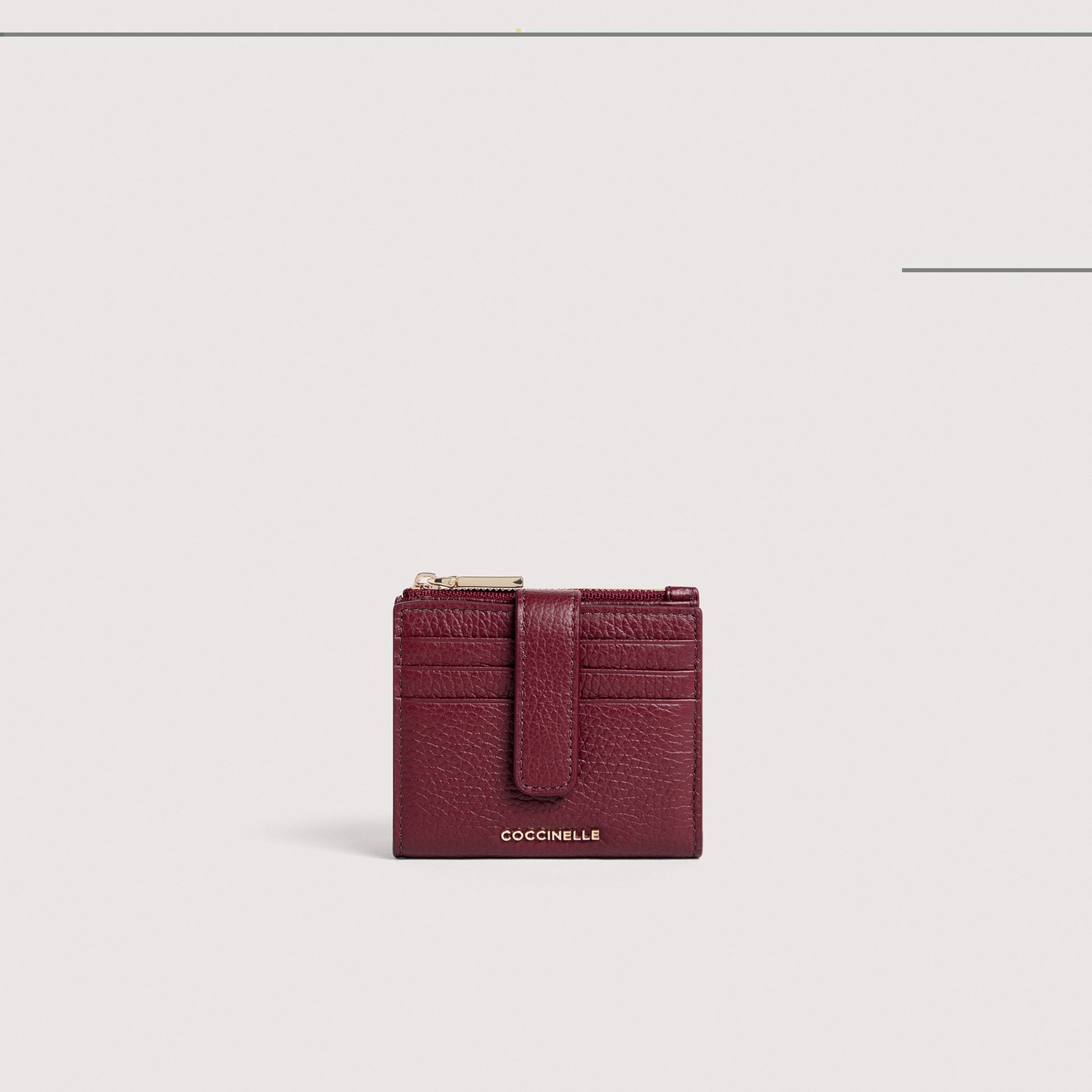 กระเป๋าสตางค์จากไลน์ Metallic นี้ประดับด้วยโลโก้โลหะของ Coccinelle กระเป๋าสตางค์รุ่นนี้ใช้งานได้จริงและกะทัดรัด จัดเก็บของที่จำเป็นได้อย่างเป็นระเบียบเรียบร้อย รุ่นนี้ทำจากหนังที่ผ่านการแปรรูปด้วยเครื่องจักรพิเศษและผ่านการอบแห้งเพื่อรักษาความนุ่มของหนังไว้ หนังรุ่นนี้ทนทานมาก ทำความสะอาดง่าย จึงเหมาะสำหรับใช้ในชีวิตประจำวัน