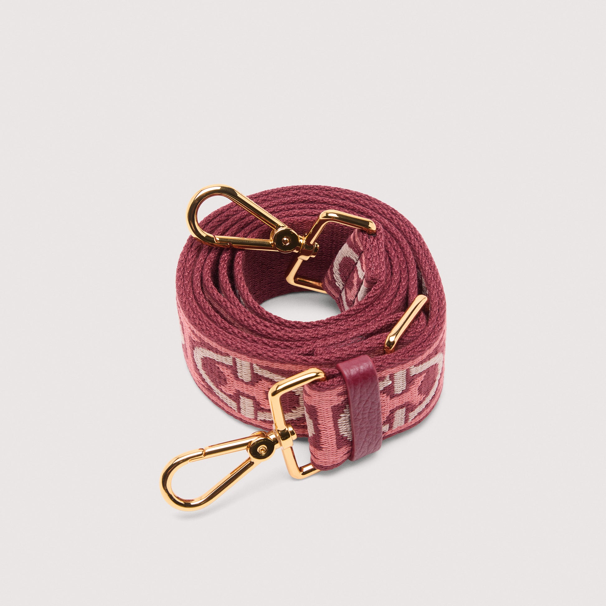สายสะพายผ้า Jacquard ลาย Monogram Coccinelle ปรับได้ด้วยวงแหวนเลื่อน เหมาะสำหรับปรับแต่งกระเป๋าของคุณ รุ่นนี้ตัดเย็บจากผ้าคอตตอน 100% ผ้าแจ็คการ์ดโมโนแกรมผลิตโดยใช้เครื่องทอแบบพิเศษที่สามารถออกแบบที่ซับซ้อนได้ เมื่อเสร็จแล้ว ผ้านี้จะได้รับการประมวลผลเพิ่มเติม และมีน้ำยาป้องกันการหลุดลุ่ยที่ด้านหลัง และน้ำยาป้องกันน้ำหยดที่ด้านที่มองเห็นได้ ทำความสะอาดด้วยผ้าฝ้ายสีขาวชุบน้ำเล็กน้อยแล้วทิ้งไว้ให้แห้ง