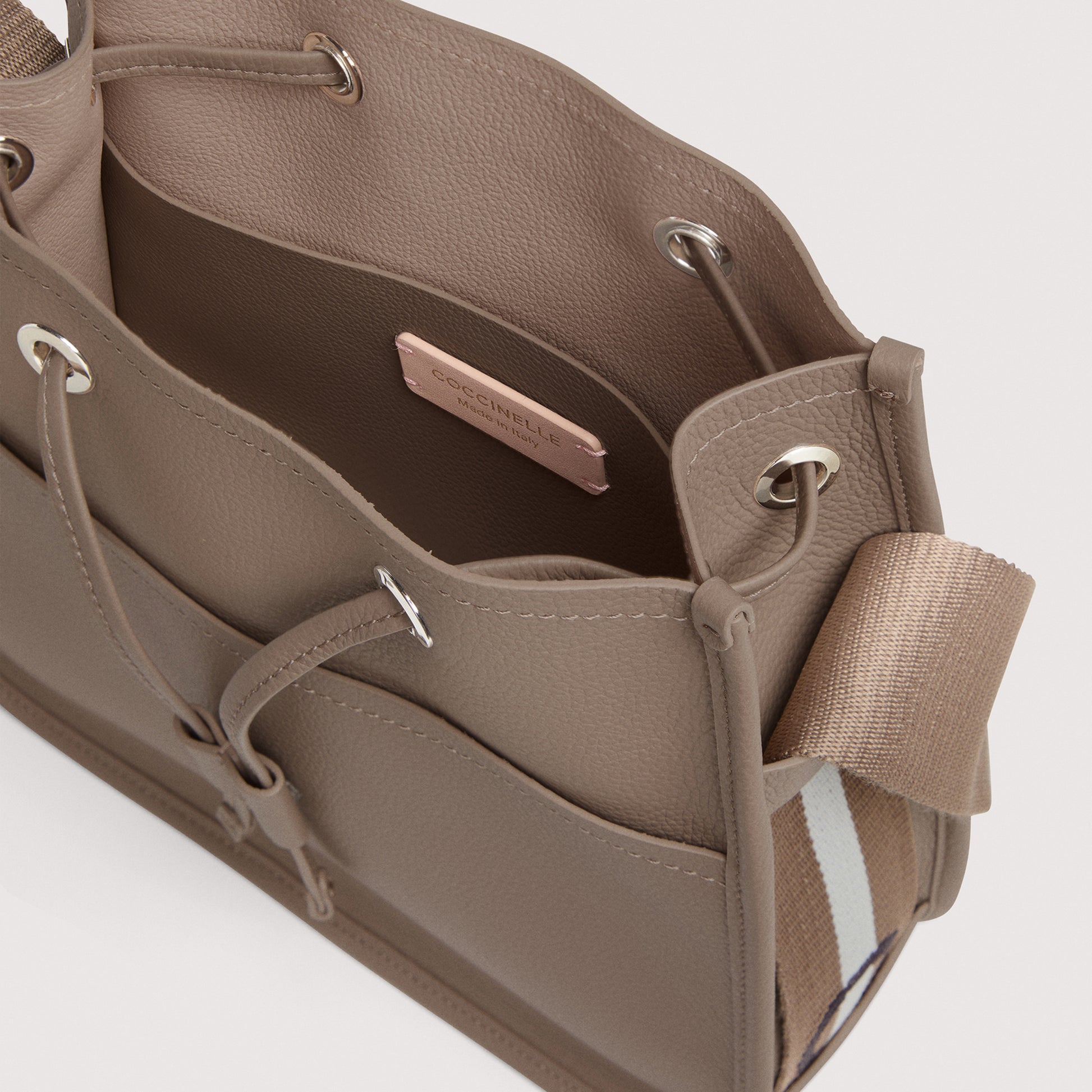 รูปร่างที่โค้งมนเป็นเอกลักษณ์ของกระเป๋ารุ่น Raquel จาก Coccinelle ริบบิ้นหลากสีสันพร้อมโลโก้ Coccinelle ขนาดใหญ่ทำให้กระเป๋าใบนี้มีเอกลักษณ์และน่าดึงดูด หนังสองชั้นให้ความรู้สึกแปลกใหม่ด้วยการใช้สีตัดกัน ขณะที่สายสะพายไหล่แบบปรับได้ช่วยให้ปรับแต่งกระเป๋าได้ตามต้องการ รุ่นนี้ทำจากหนังที่ผ่านกระบวนการพิเศษและอบด้วยความร้อนเพื่อให้คงความนุ่ม หนังประเภทนี้เคลือบสีทั้งสองด้านเพื่อให้ได้เอฟเฟกต์สองเท่า หนังชนิดนี้มีความทนทานและทำความสะอาดง่าย จึงเหมาะสำหรับใช้ในชีวิตประจำวันรายละเอียดสินค้า