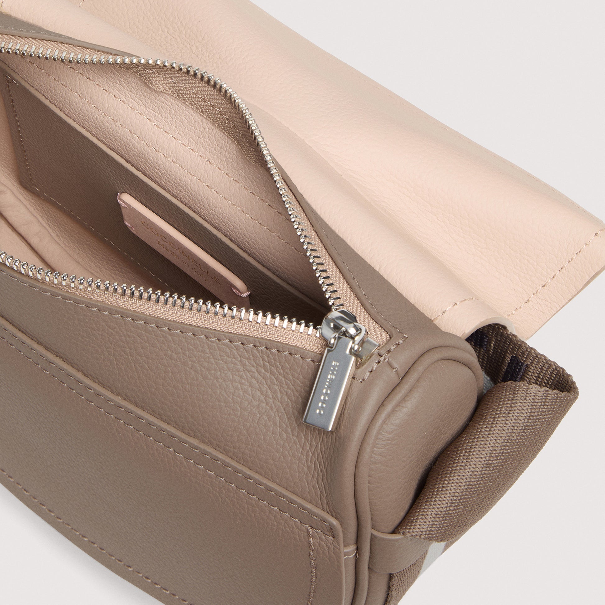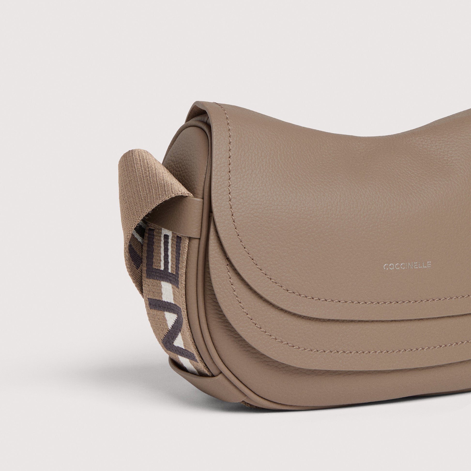 รูปร่างที่โค้งมนเป็นเอกลักษณ์ของกระเป๋ารุ่น Raquel จาก Coccinelle ริบบิ้นหลากสีสันพร้อมโลโก้ Coccinelle ขนาดใหญ่ทำให้กระเป๋าใบนี้มีเอกลักษณ์และน่าดึงดูด หนังสองชั้นให้ความรู้สึกแปลกใหม่ด้วยการใช้สีตัดกัน ขณะที่สายสะพายไหล่แบบปรับได้ช่วยให้ปรับแต่งกระเป๋าได้ตามต้องการ